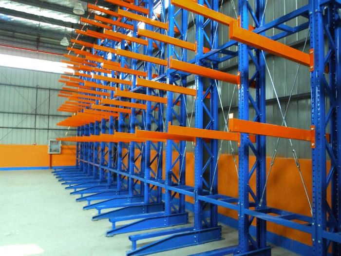 悬臂式货架主要由立柱片、悬臂梁、连接杆等组成,其特点是前伸的悬臂结构轻巧,载重力强,对存放不规格或是长杆件物料,能大幅度提高仓库的利用率和工作效率,悬臂可是单面或双面。增加了木板或钢格板后,特别适合空间小、密度低的库房,管理方便、视野开阔。广泛用于机械加工及建材超市行业。 产品优点: 1、悬臂货架系列全部采用组合式,拆装,运输,调节,移动等简易方便,安全可靠。 2、采用可调式立柱,可根据实际需要调节隔板之间的间距和增减隔板。 3、可充分提高空间利用率,使仓库物资管理规范化,标准化,与堆垛机或叉车相配套,既能提高物资流通效率,降低储运费用,增加经济效益,又能提高物资流通的机械化水平,减轻劳动强度,改善劳动条件。 4、悬臂货架长度可根据场地情况,自由组合。
