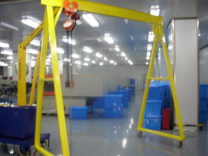 龙门架(移动起吊小龙门架)是根据中、小工厂(公司)日常生产需要搬运设备、仓库进出货,起吊维修重型设备及材料运输的需要,开发出来的新型小型起重龙门架。形象如盘龙柱因此得名。适用于制造模具、汽修工厂、矿山、土建施工工地及需要起重场合。常见的在建筑施工中兼作材料运输和施工人员的上下使用,实现起重机械化。可减少人力,降低生产运营成本,提高工作效率。 该移动龙门架优点是可全方位移动性,可快速拆卸安装,占地面积小,用微型汽车就可转移到另一个场地安装使用。宽度、高度可分级调节,钢架构设计合理,能承受从100~5000KG重量。尤其适用于车间设备的安装、搬运、调试。 汽车上货物的装卸,汽修车间吊装发动机大件等。起重小龙门架主要有二种规格:一是在地面上全方位移动的龙门架,带刹车承重轮可在地面上移动,适合在地面上起吊物品;二是用钢轨固定安装在楼板面或梁上,通过电动或人力葫芦,实现起重机械化。可减少人力,降低生产运营成本,提高工作效率。 |